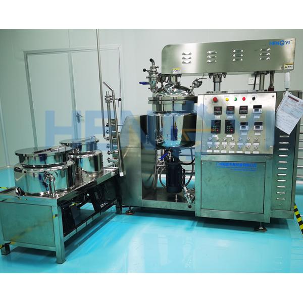 The cosmetics vacuum emulsifier is professionally designed according to the ointment manufacturing process of cosmetics and ointments etc. products through introducing advanced technology from abroad. The whole machine is composed of pre-treating boiler, vacuum emulsifying and blending boiler, vacuum pump,hydraulic system, dumping system, electric control system and work platform etc. The machine unit is featured by simple operation, stable performance, good homogenizing performance, high production efficiency, convenient cleaning, reasonable structure, small land area and high automatic degree etc.